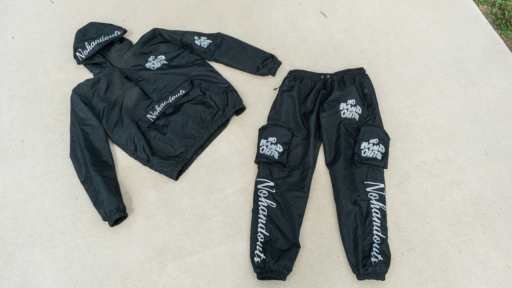 Overall, No HandOuts windbreaker sets combine practicality with contemporary style, making them a go-to choice for anyone looking to stay active while looking effortlessly chic.
